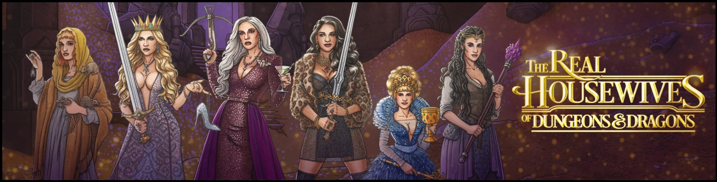 The Real Housewives of Anaheim embark on the adventure of a lifetime when they're dropped into a fantasy world and must learn to (cat)fight for themselves. All the drama and devastation of the Bravo franchise meets the danger and delirium of Dungeons & Dragons in this hit actual play podcast from Reality RPG.